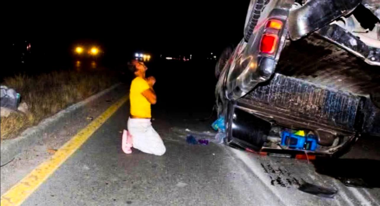 🗣️ DE RODILLAS, MUJER AGRADECE A DIOS TRAS FUERTE ACCIDENTE CARRETERO