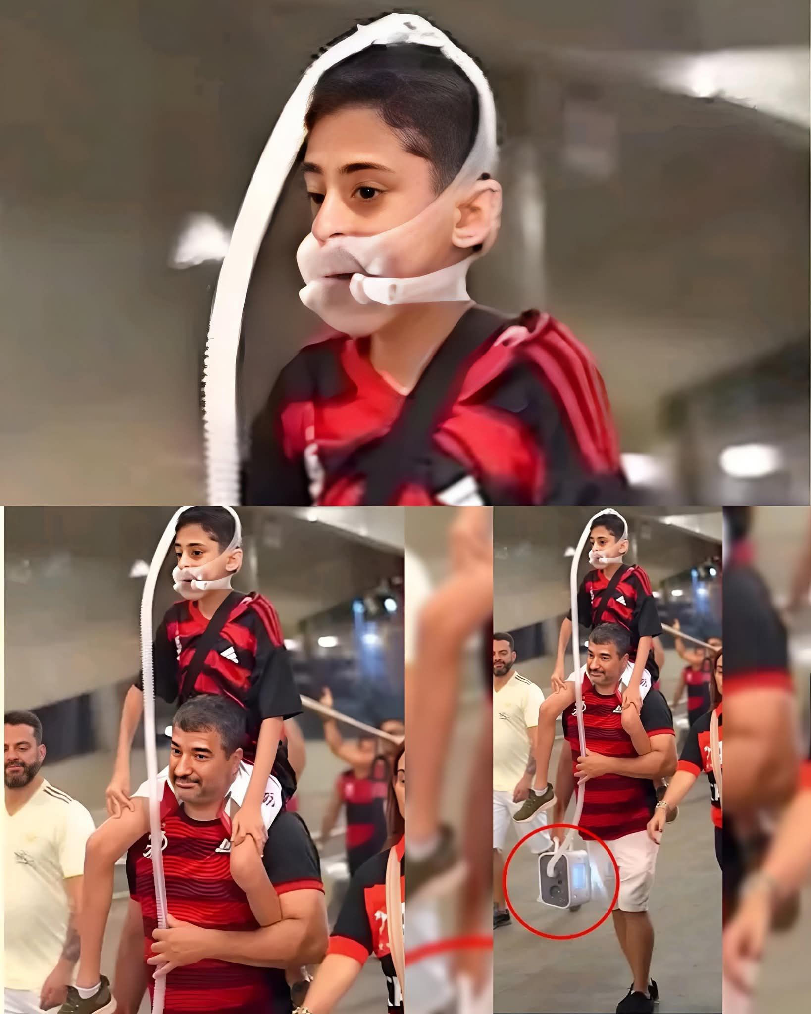 Una imagen ha conmovido a miles de aficionados en redes sociales: un padre cargando a su hijo sobre los hombros, mientras el pequeño —con un respirador y vistiendo la camiseta del Flamengo— vive el sueño de estar cerca de su equipo favorito.