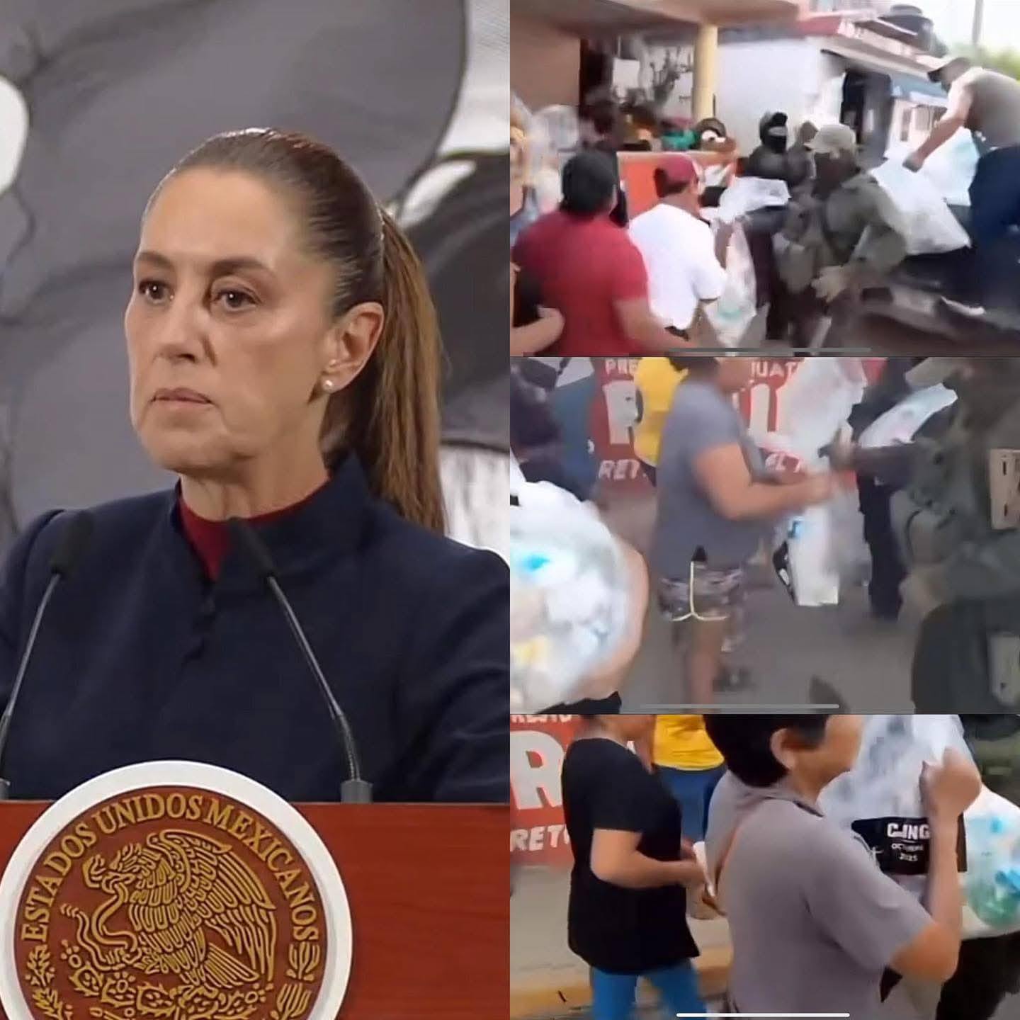 La presidenta Claudia Sheinbaum manifestó su rechazo ante el video que circula en redes sociales, donde presuntos integrantes del Cártel Jalisco Nueva Generación (CJNG) aparecen entregando despensas a los damnificados por las recientes lluvias en Veracruz.