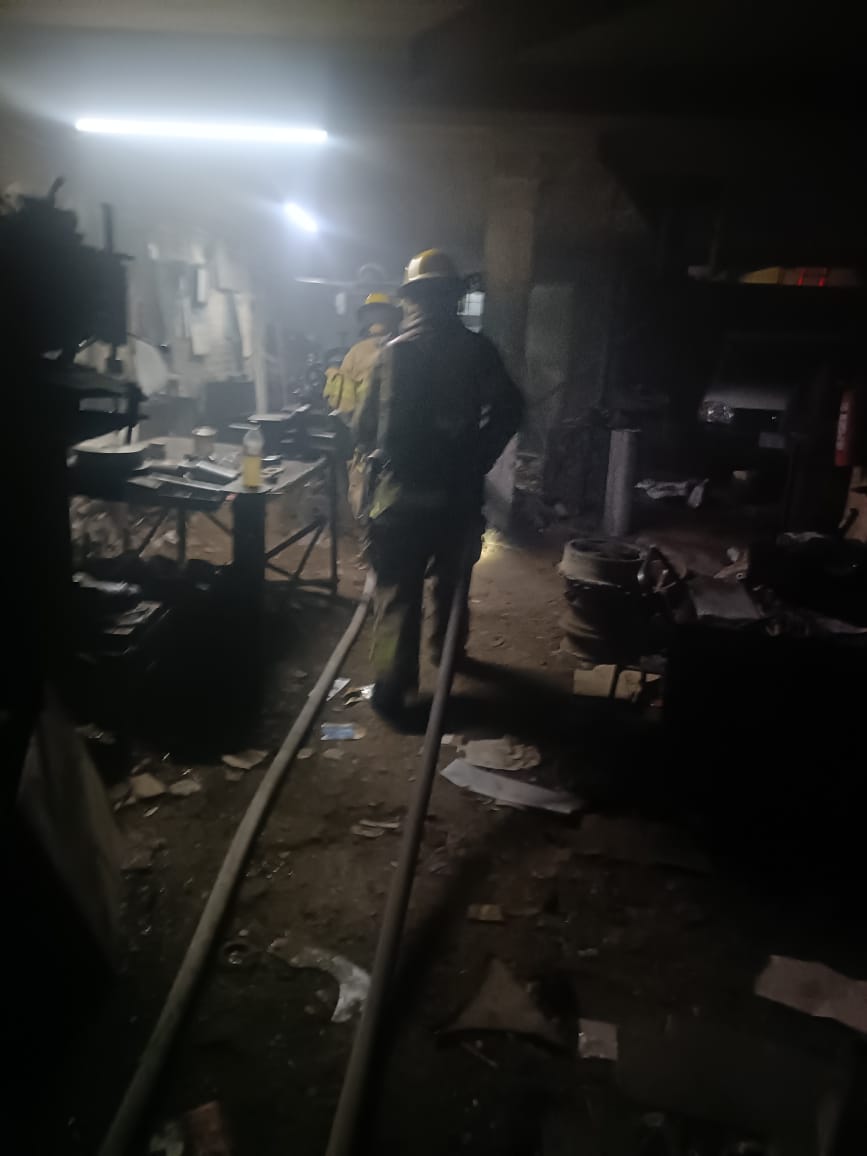 Al arribar al lugar, elementos del Cuerpo de Bomberos observaron que se estaba quemando un Rotoplas donde se almacenaba agua y mangueras. Los bomberos procedieron a sofocar el fuego con línea de tres cuartos y agua de la máquina, y colocaron un extractor de humo para controlar el ambiente.