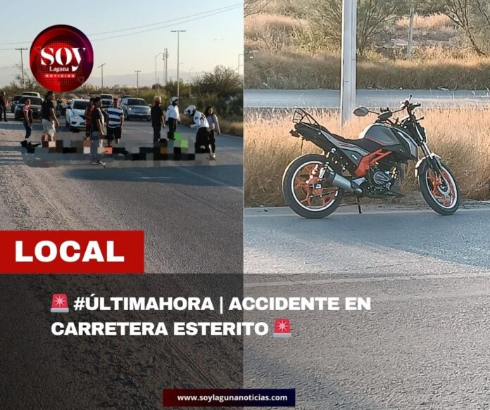 Torreón, Coahuila.– La tarde de este viernes se registró un accidente en la carretera Esterito, antes de incorporarse al bulevar, donde elementos de Tránsito y Vialidad acudieron de inmediato para brindar apoyo a los involucrados.
