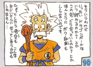 El mensaje adjunto en el dibujo es especialmente conmovedor: «Quizás Goku se convierta en un abuelete como este. Por lo tanto, ¿Cuándo va a terminar Dragon Ball?, ¿Qué va a pasar a partir de ahora? Francamente, ni yo mismo lo sé».