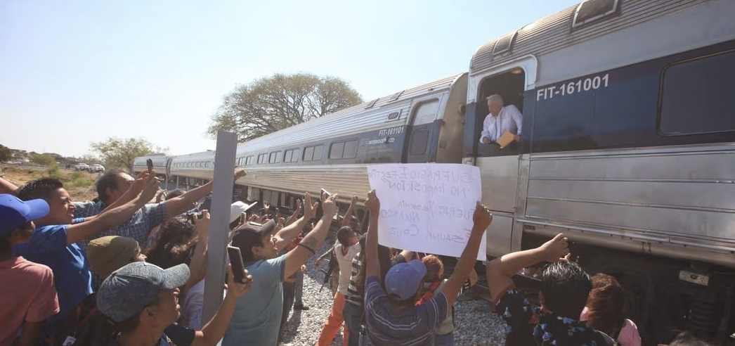 Los pobladores de Tehuantepec salieron de sus hogares para presenciar el paso del tren, que se espera llegue a Coatzacoalcos, Veracruz, alrededor de las 20:00 horas. Este proyecto busca impulsar el desarrollo económico y la conectividad en la región.
