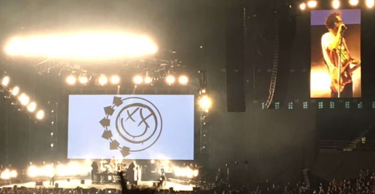 El vocalista Tom DeLonge saludó al público en español, dando inicio a una velada llena de momentos memorables. Con notas de «Así habló Zaratustra», la banda estadounidense hizo su entrada triunfal, acompañada por una pantalla gigante que amplificaba su presencia en el escenario.