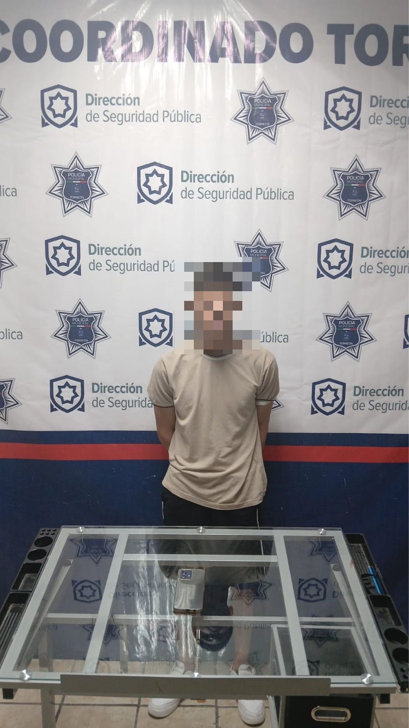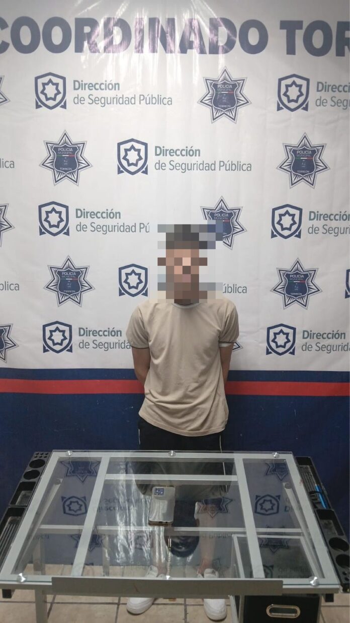 La madrugada de este domingo, elementos de la Policía Municipal de Torreón detuvieron a un sujeto identificado como Alan Arturo “N” de 22 años de edad, por su presunta participación en un robo a persona cometido sobre la calle Blanco y avenida Matamoros, en la colonia centro.