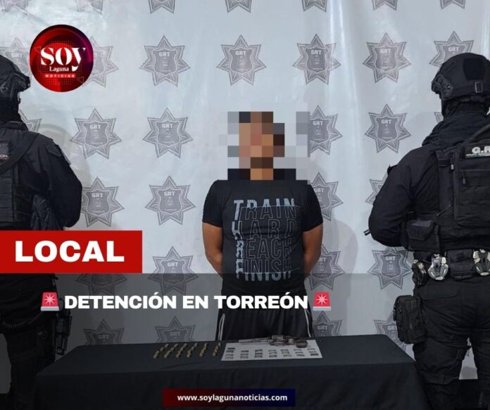 Elementos del Grupo de Reacción Torreón (GRT) detuvieron a un hombre por la presunta posesión de narcóticos y portación de arma de fuego, durante un operativo de vigilancia preventiva realizado en la colonia Las Luisas.
