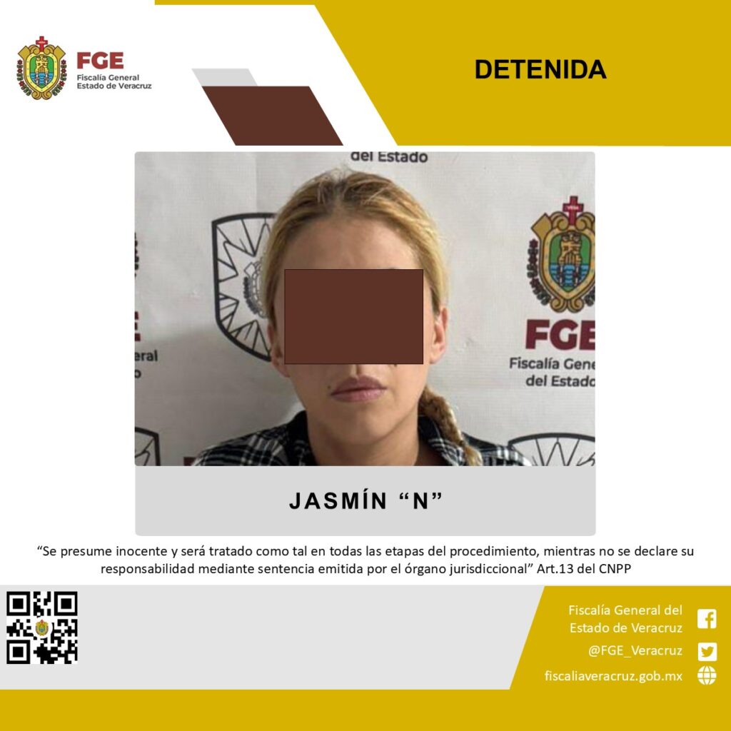 Elementos de la Policía Ministerial llevaron a cabo la detención de Jasmín ‘N’ por hechos que podrían constituir un delito, mientras realizaban actos de investigación en la colonia Reserva Tarimoya Cuatro, en el municipio de Veracruz, informó la Fiscalía General del Estado.