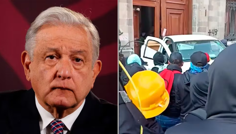 Videos compartidos en redes sociales muestran momentos de tensión en la Plancha del Zócalo de la Ciudad de México, donde los manifestantes demandaban una audiencia privada con el presidente, acompañados por Vidulfo Rosales, abogado de los padres de los 43 normalistas desaparecidos en 2014.