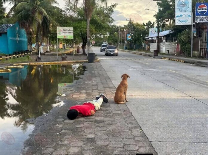 Lo que llamó la atención de transeúntes fue que un perrito en situación de calle permaneció a su lado, sin abandonarlo, durante varias horas. El can se mantuvo vigilante junto al hombre hasta que amaneció, acompañado incluso por un grupo de palomas que se encontraban alrededor del lugar.