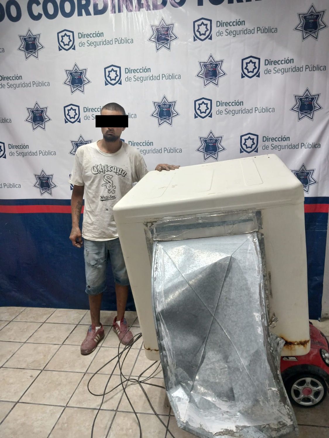 El sujeto, identificado como José Arturo “N”, de 30 años, ya se había retirado varios metros con el aparato de aire acondicionado, mismo que transportaba en un carrito montable de color rojo. Sin embargo, fue alcanzado y asegurado por los elementos.