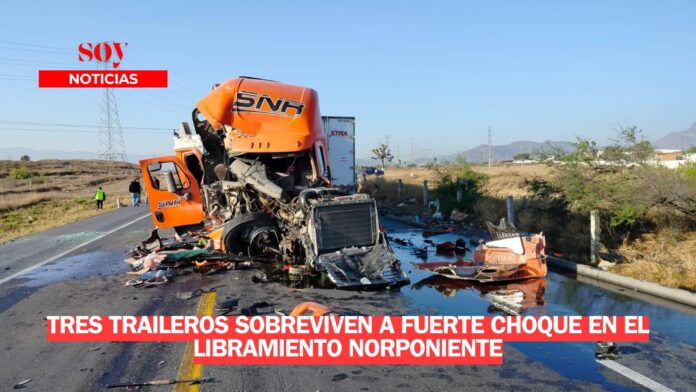Tres conductores de tráiler lograron salir con vida tras un aparatoso accidente ocurrido en el libramiento Norponiente, a la altura del kilómetro 27.